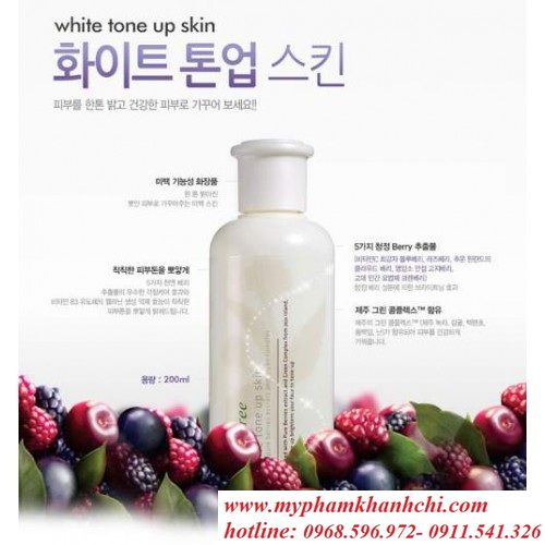 Nước hoa hồng Innisfree White Tone Up Skin là sản phẩm nước hoa hồng được chiết xuất từ dâu tằm – các loại quả họ berry mang lại cho bạn làn da trắng sáng rạng rỡ, dưỡng da mềm mịn, săn chắc với việc lỗ chân lông se khít! Sản phẩm được thiết kế dạng chai đứng, dung tích 200ml